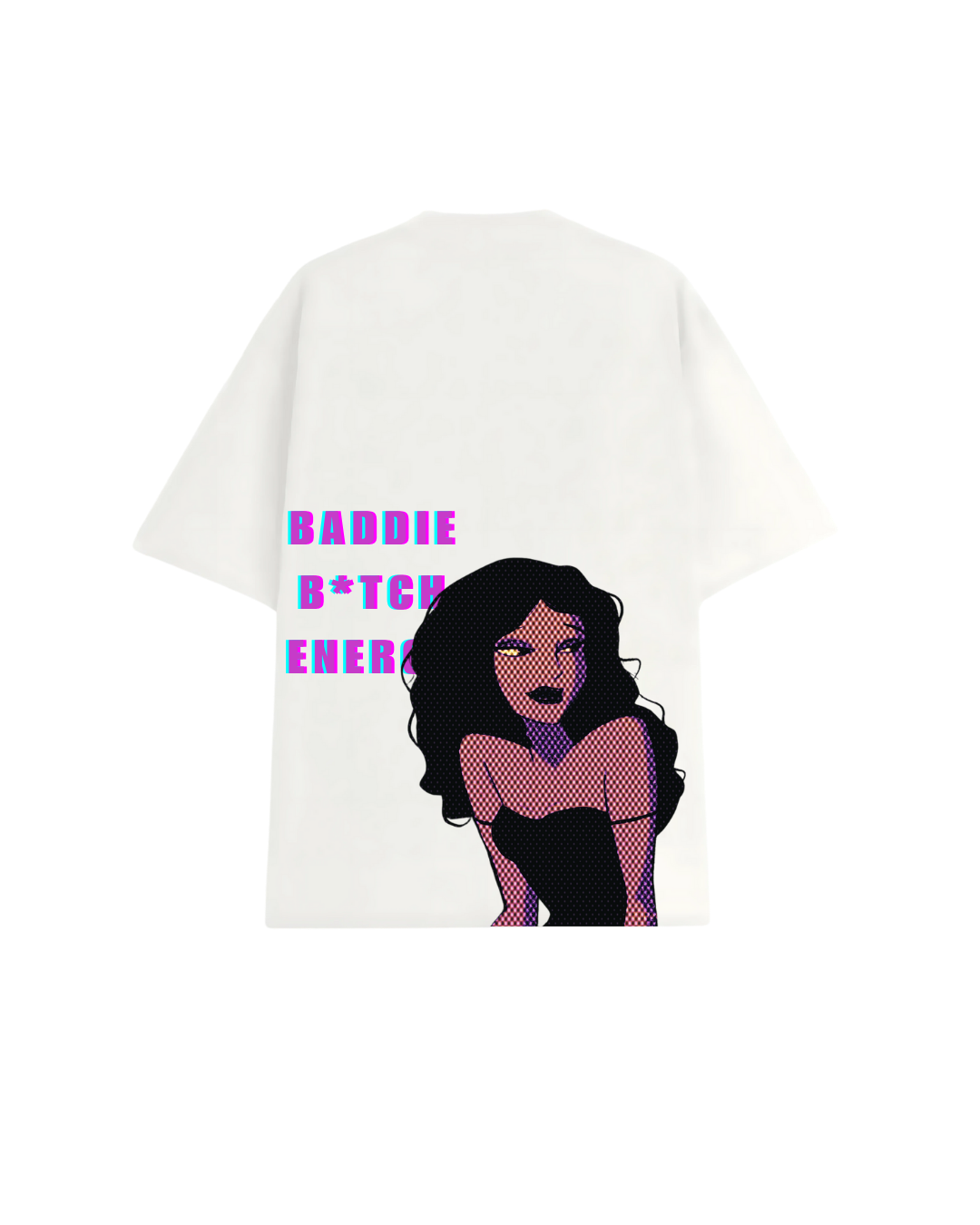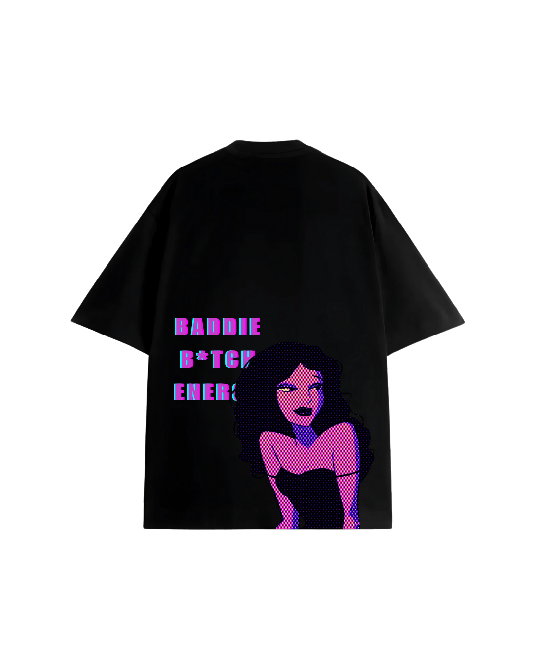 Flip it and the statement gets louder — “Baddie B*tch Energy” printed next to a fearless femme graphic in pop-art neon pink and violet. It’s not just a look, it’s a declaration. Sexy. Confident. Untouchable.