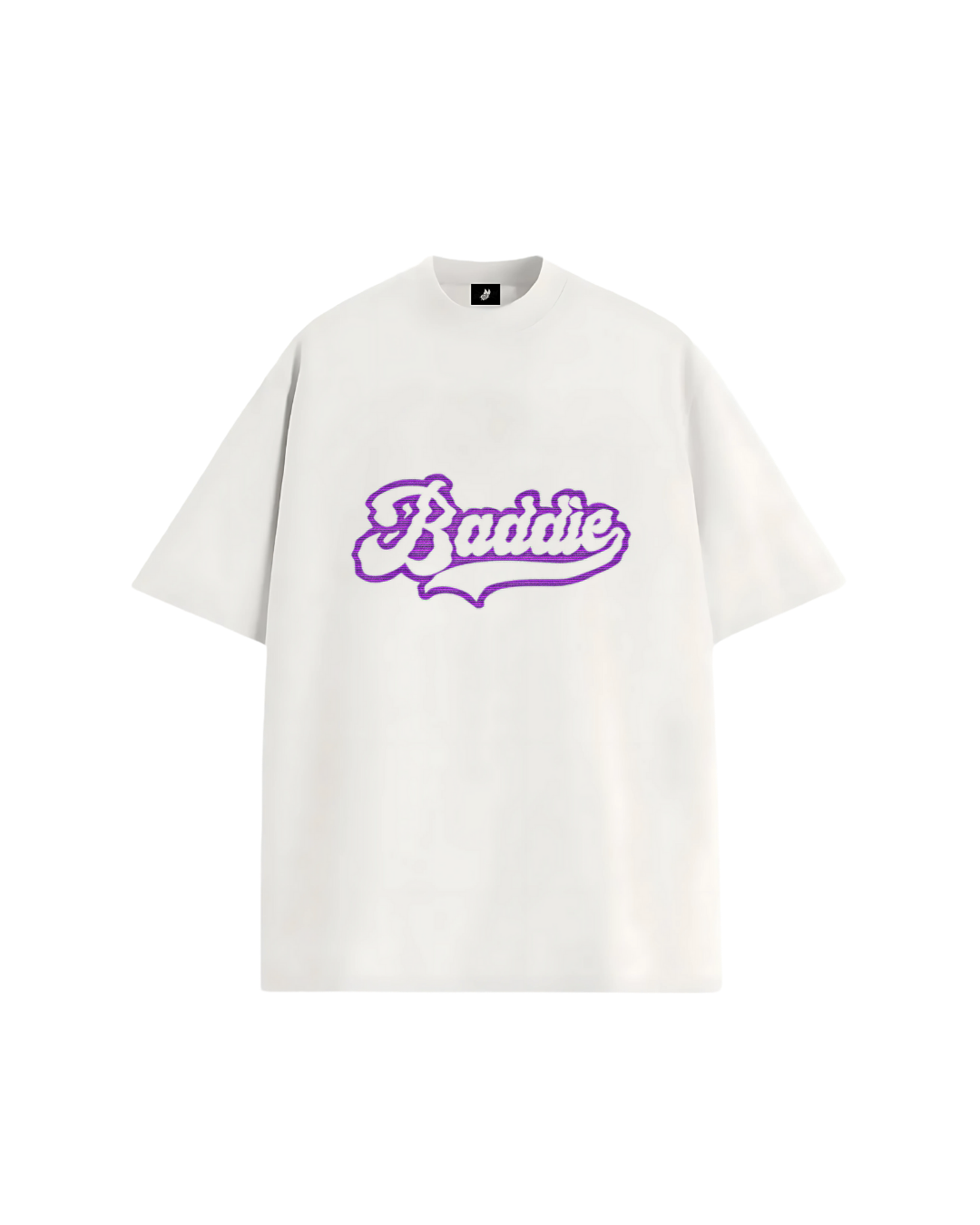 This one’s for the ones who know their worth and never tone it down. The Baddie Tee brings that bold, bossed-up energy in a clean white oversized silhouette, featuring a playful yet powerful graffiti-style purple logo across the chest.